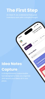 Our app doesn’t just protect your ideas; it motivates you to keep innovating. Through interactive progress tracking and goal setting, Clear IP turns intellectual property management and idea capture into an engaging, rewarding experience.