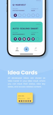 Store, track, and manage all your ideas in our secure vault. Each idea is displayed as a color-coded card that visually represents its stage, making it easy to stay organized.