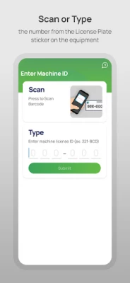 • Use your phone’s camera to scan the barcode of the equipment License Plate sticker