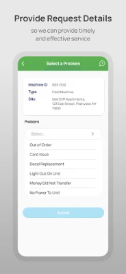 • Pick from preset problem descriptions for the equipment you’re reporting
