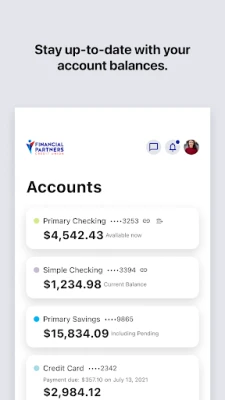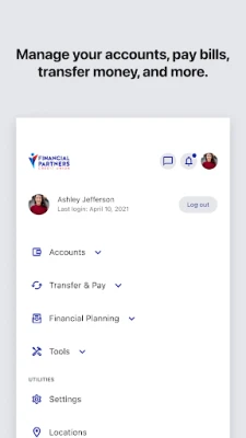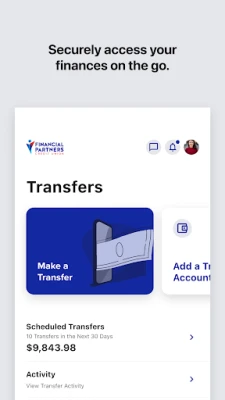 • Check balances • View transaction history • Transfer funds between Financial Partners accounts or to other members • Move funds from other financial institutions • Make loan payments • Deposit checks • Access eStatements • Manage debit and credit cards • Apply for loans • Open accounts • Pay bills • Set account alerts • Contact us via secure message or chat • Use budget and expense tools • Find branch & ATM locations, including CO-OP Network ATMs (over 30,000 nationwide) • Login using biometrics (if your device supports it) • Send Money with Zelle