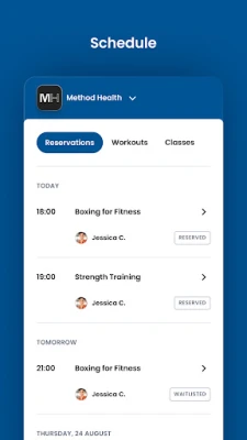 For members of Method Health to reserve their place in a class, sign up for gym events, and general account management like updating headshots and credit card on file.