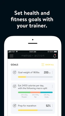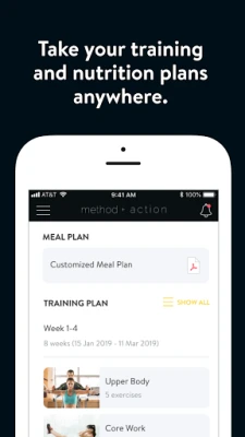 With the Method Plus Action App, you can start tracking your workouts and meals, measuring results, and achieving your fitness goals, all with the help of your personal trainer.